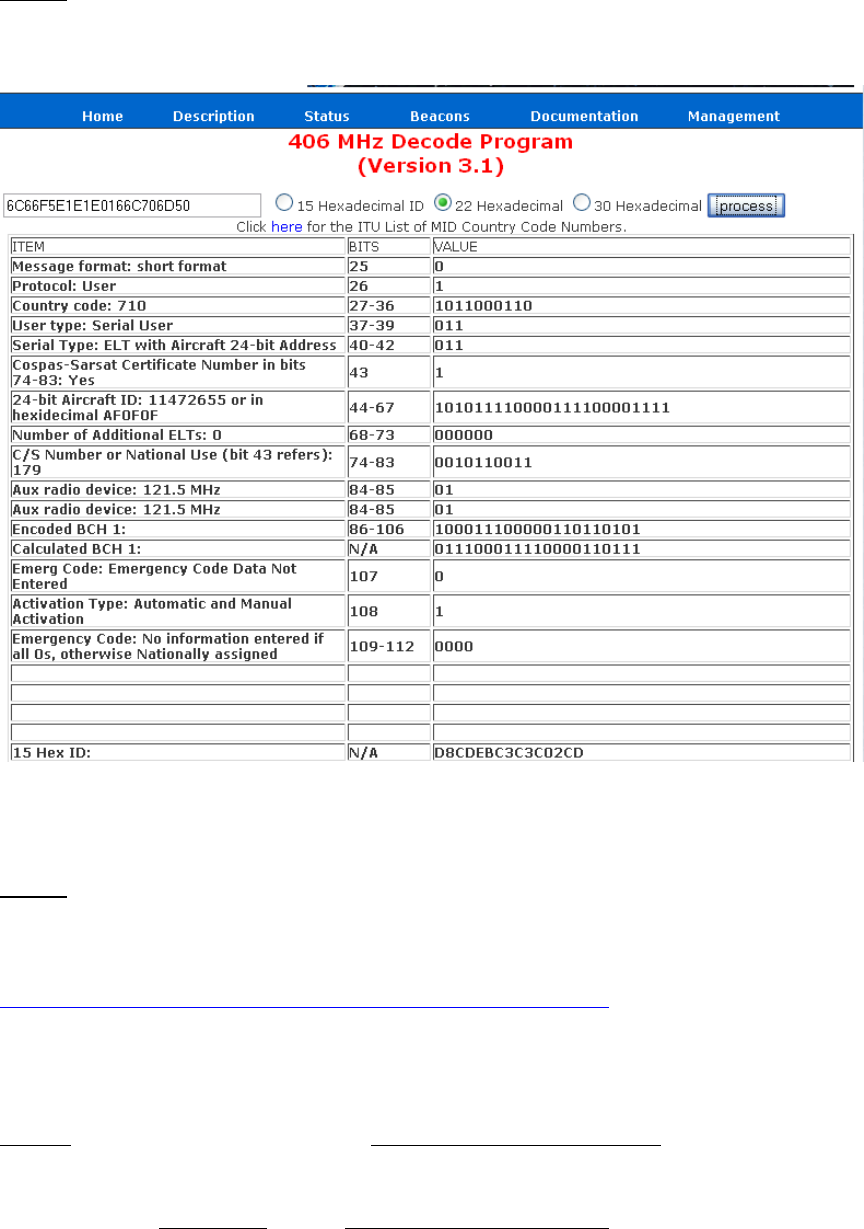 Input the 22-digit hex code into the 406 MHz Decode Program provided. See below:
