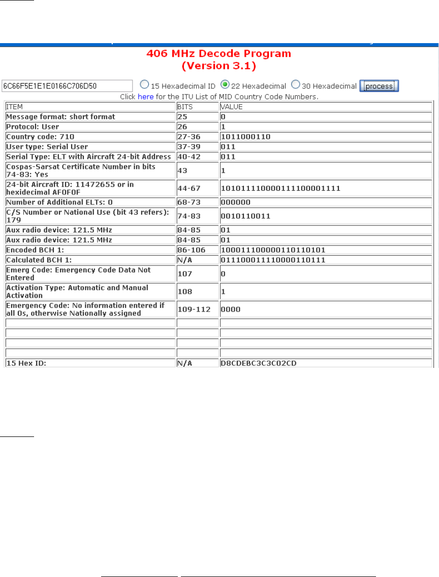 Input the 22-digit hex code into the 406 MHz Decode Program provided. See below: