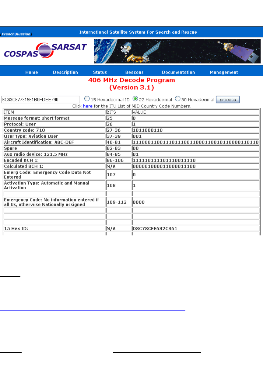 Input the 22-digit hex code into the 406 MHz Decode Program provided. See below: